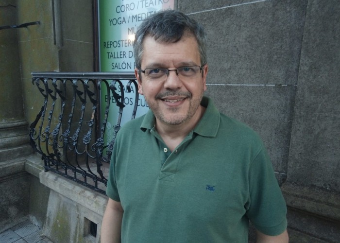 El sociólogo Gustavo Leal, exdirector de Convivencia y Seguridad Ciudadana, participó en la charla desarrollada frente al local de AEBU, instancia de intercambio sobre la Ley de Urgente Consideración, principalmente a los artículos vinculados a la seguridad.