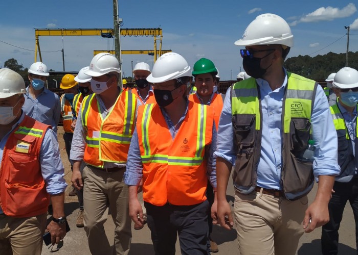 El Ministro de Transporte y Obras Públicas, José Luis Falero, recorrió la planta de soldadura instalada en Florida, donde se sueldan los rieles destinados al proyecto Ferrocarril Central.