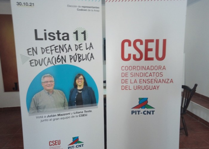Integrantes de la lista 11 de la Coordinadora de Sindicatos de la Enseñanza del Uruguay (CSEU), candidatos en la elección de Consejeros Docentes del CODICEN, visitaron este jueves Florida.