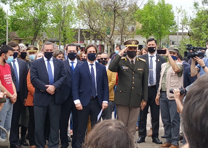 El presidente de la República, Luis Lacalle Pou, participó de los actos en la ciudad de Sarandí Grande, en el marco de un nuevo aniversario de la Batalla de Sarandí.