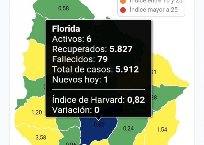 Se detectó este lunes 1 caso de Covid-19 en nuestro departamento, cerrando la jornada con 6 personas cursando la enfermedad.