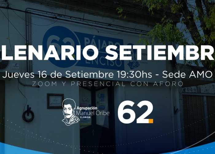 De forma presencial con aforo, y a través de la plataforma Zoom, la Agrupación Manuel Oribe realizará su plenario del mes de Setiembre.