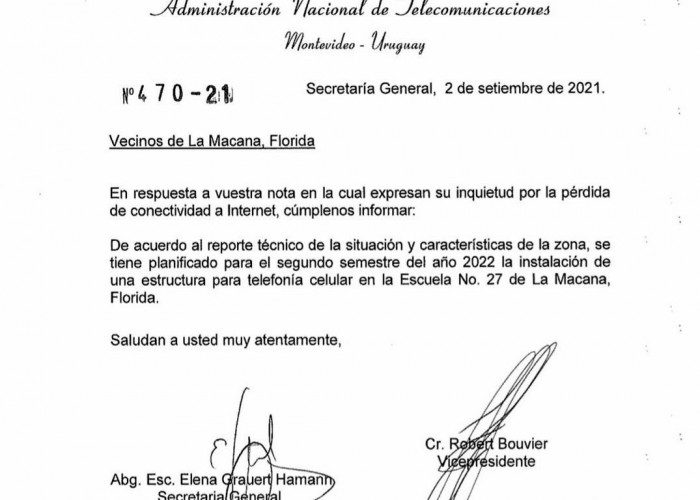 El diputado Álvaro Rodríguez Hunter recibió respuesta de ANTEL sobre inquietud al respecto de problemas de conectividad en zona de La Macana.