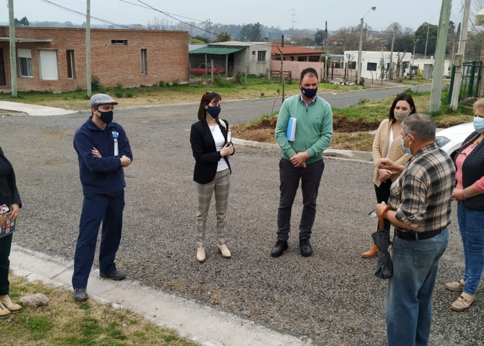 La Jefe comercial de OSE, Romina Meriles, junto al Secretario del Directorio del ente Guillermo Dati, y el jefe técnico Ing. Pedro De Izaguirre, se reunieron con vecinos del barrio Portones de Florida, para tratar entre otros temas la extensión de la red de saneamiento.