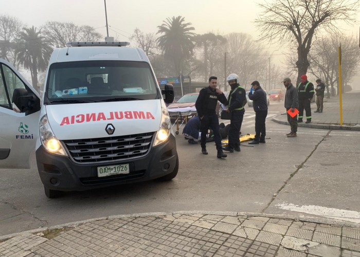 Mujer mayor de edad que circulaba en moto cayó al pavimento en esquina de Sarandí y Antonio María Fernández.