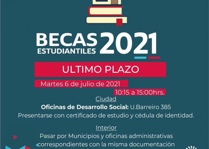 La Intendencia informó "a los beneficiarios de las Becas Estudiantiles 2021”, que este martes 6 de julio “es el último día de pago de las mismas".