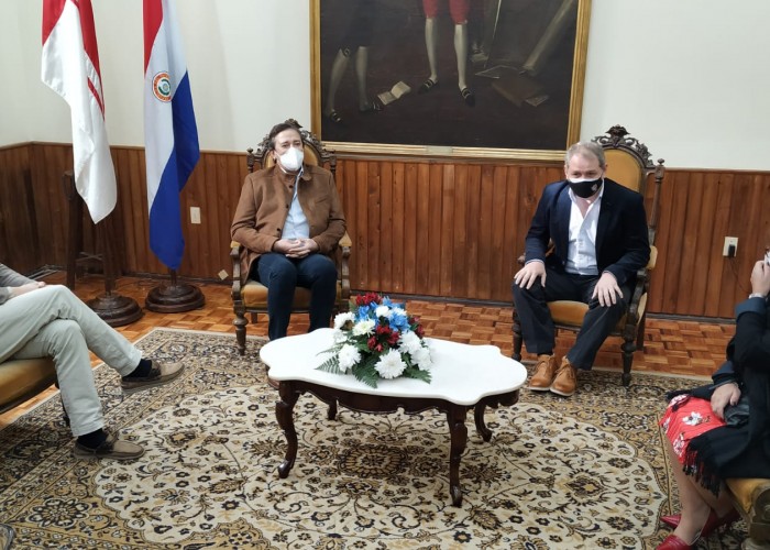El intendente Guillermo López recibió en el Salón de Honor del Edificio Comunal al Embajador de Paraguay en nuestro país, Rogelio Benítez.