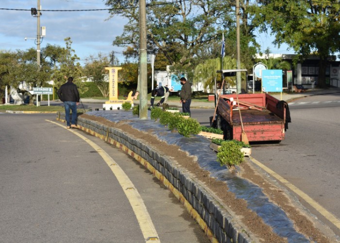 El departamento de Espacios Públicos comenzó esta semana con el reacondicionamiento de los canteros ubicados en el acceso a la ciudad frente al Prado Piedra Alta.