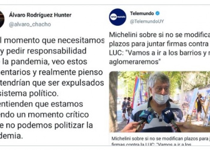 El diputado Álvaro Rodríguez Hunter se expresó ante dichos de Rafael Michellini, quien dijo que si no se modifican los plazos para juntar firmas contra la LUC, "vamos a ir a los barrios y nos aglomeraremos”.