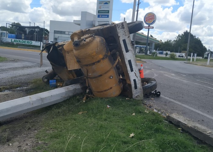 Un camión con zorra que circulaba de norte a sur, volcó en la rotonda de José Pedro Varela y ruta 5, uno de los accesos a la capital departamental.