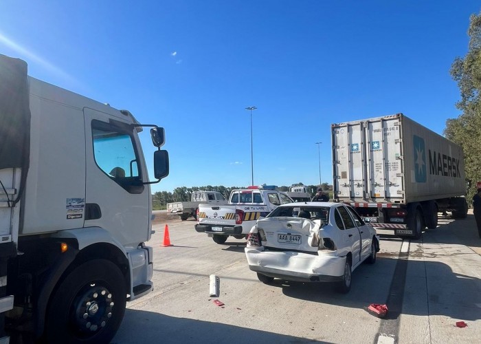 Se registró un triple choque “por alcance” en el kilómetro 105.800 de ruta 5, siendo protagonistas dos camiones y un auto.