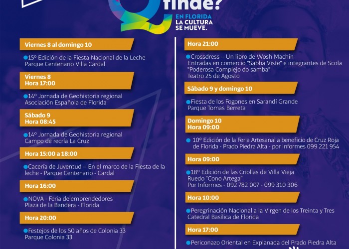 La Dirección General de Cultura de la Intendencia de Florida informó sobre las diversas actividades que se estarán desarrollando este viernes y el fin de semana.