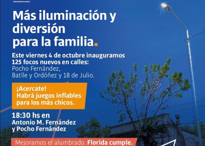 Este viernes 4 de Octubre, la Intendencia de Florida estará inaugurando nuevos focos Led en nuestra ciudad.