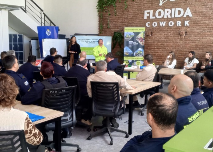 Tras gestión realizada por la Dirección Departamental de Salud y el CECOED, se desarrolló en las instalaciones de Florida Cowork una charla sobre “reconocimiento e identificación en accidente con químicos”, a cargode la empresa AMBIPAR RESPONSE.