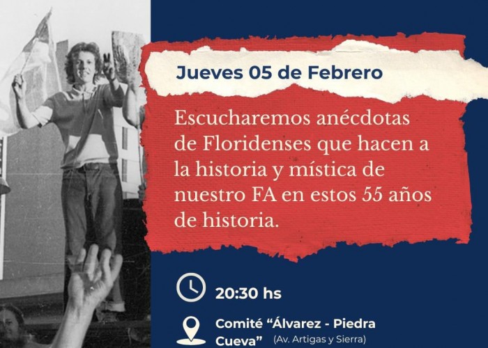 En el marco de los 55 años de la fundación del Frente Amplio, la corriente política invitó a participar de una reunión abierta este jueves 5 de febrero en el Comité Álvarez- Piedra Cueva en Avda Artigas y Sierra.