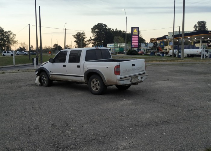 Una camioneta siguió de largo en la rotonda de ruta 5 y 56 chocando contra una columna de señalización.