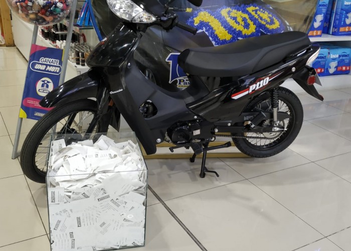 Se realizó el sorteo de una nueva moto de Farmacia Pasteur, la décima de la promoción por los 100 años de la empresa.