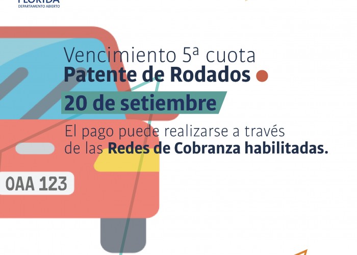 Este miercoles 20 de setiembre, vence el plazo para el pago de la 5ta cuota de Patente de Rodados 2023