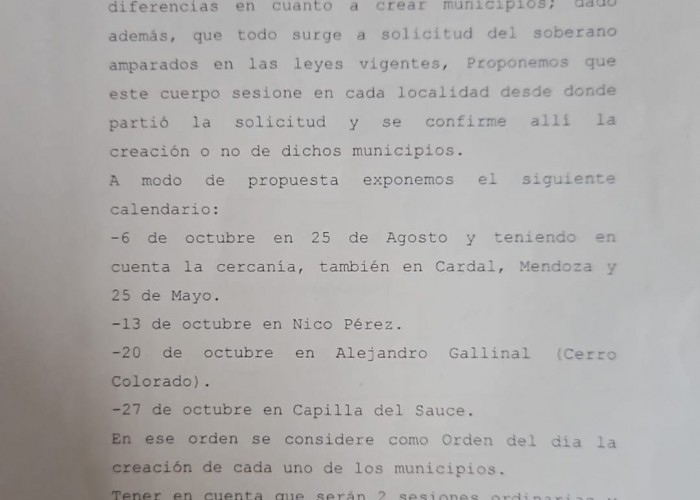 Ediles del Frente Amplio y del sector Federales del interior del Partido Nacional solicitan sesionar en el interior del departamento, cuatro veces durante el mes de octubre, en localidades donde se pretende crear Municipios.