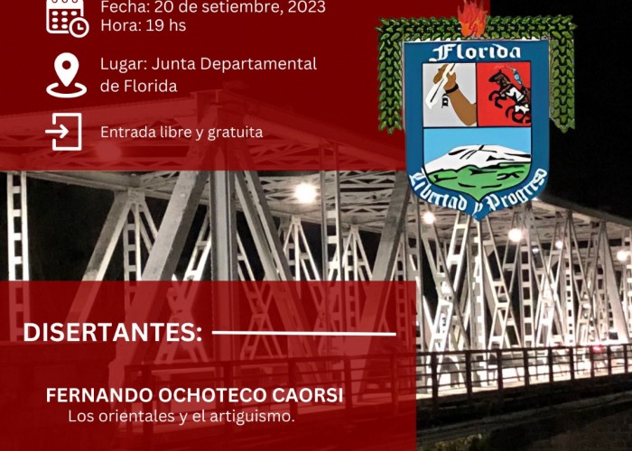 Se realizará el próximo 20 de setiembre, desde la hora 19 en la Junta Departamental de Florida, una charla denominada “De Orientales a Uruguayos”.
