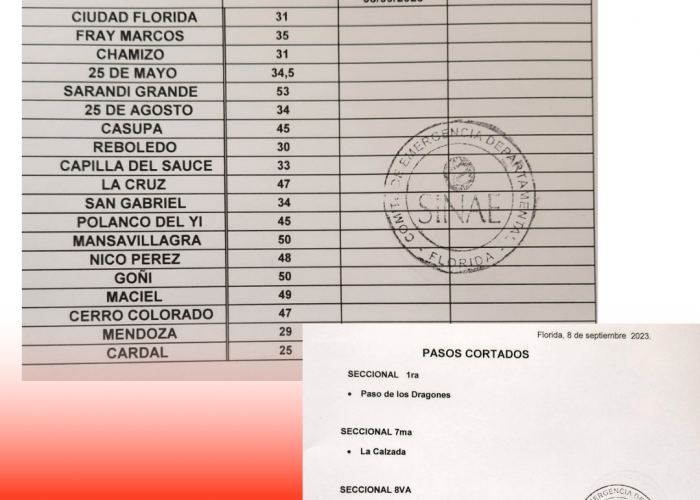 El CECOED brindó informe sobre el agua caída en las ultimas horas en el departamento, y los pasos cortados a causa de las lluvias.