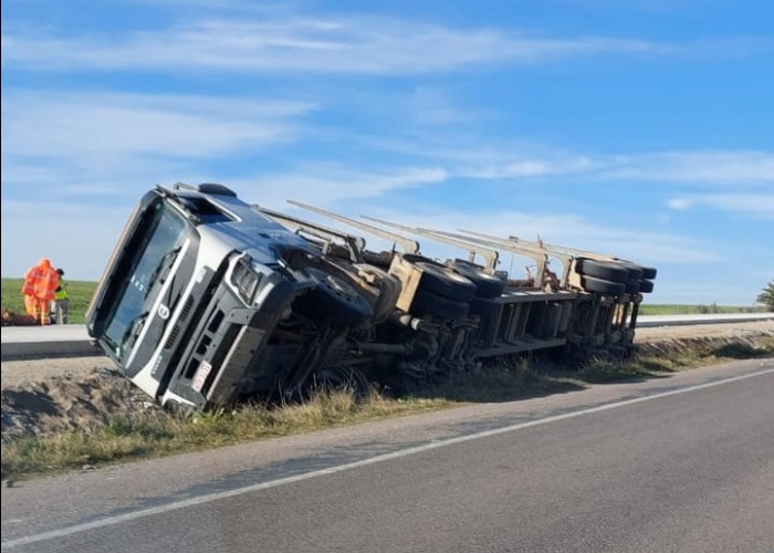 Se registró en la madrugada de este martes el vuelco de un camión cargado con madera en ruta 5, entre las dos Mendozas.