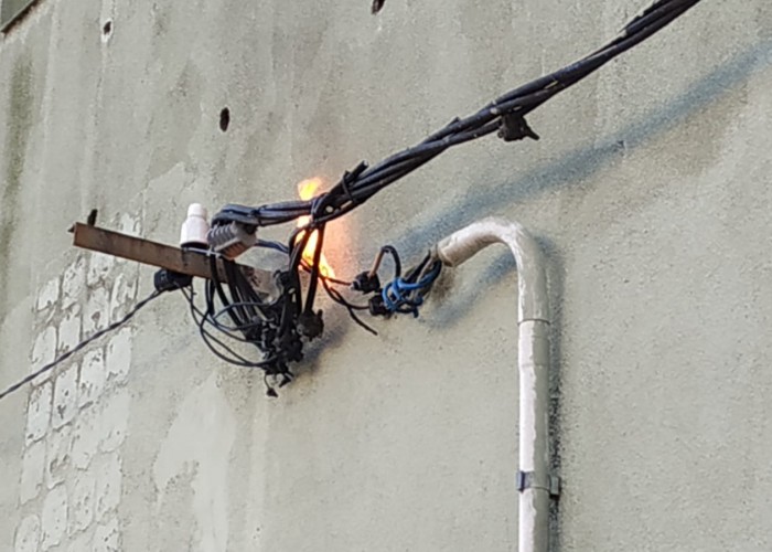 Cableado eléctrico en la fachada de la Escuela Nº 103 tomó fuego en la mañana de este martes, teniendo que acudir personal del Destacamento de Bomberos.