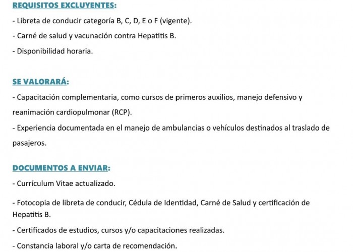 La Cooperativa medica de Florida (COMEF) esta realizando un llamado para suplente de conductor especializado, con inscripciones hasta el próximo 10 de diciembre.