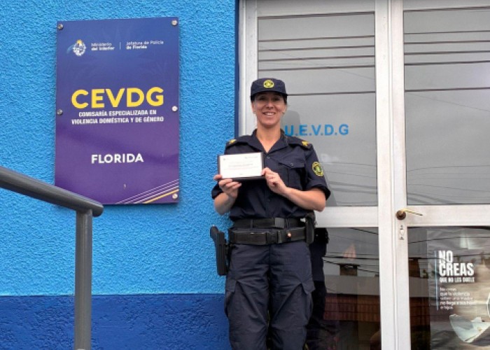 Tras evento realizado por el Ministerio del Interior, por el “Día Internacional de la Violencia Contra la Mujer”, una Policía de la Jefatura de Florida recibió reconocimiento por su compromiso y colaboración con la sociedad.