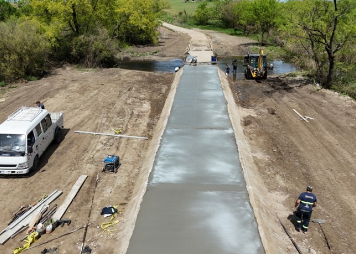 Continúan ejecutándose las obras de construcción de la nueva losa de hormigón en el acceso a la calzada sobre el Arroyo Pintado, en la zona conocida como Barra del Pintado.