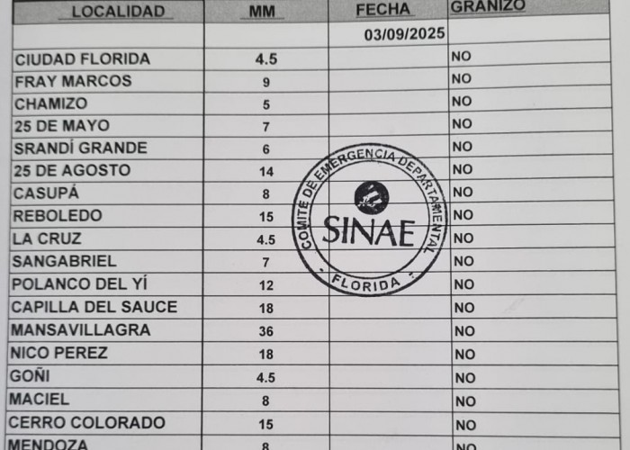 El CECOED (Centro Coordinador de Emergencia Departamental), dio a conocer el informe de lluvias registradas en las últimas horas.