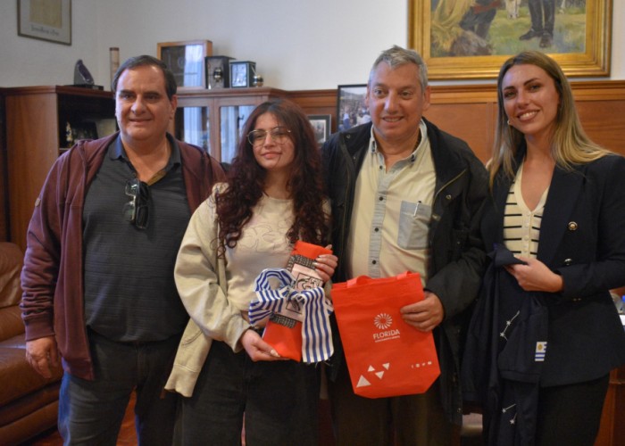 El intendente de Florida, Carlos Enciso, recibió en su despacho a Micaela Barreiro, estudiante de 3er año de Educación Media Superior del Liceo N.º 1.