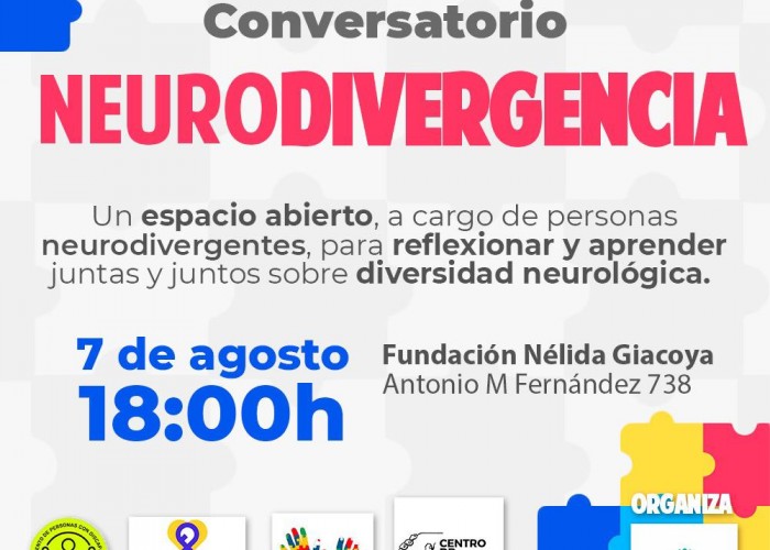 El próximo jueves 7 de agosto se llevará a cabo una charla a cargo de personas neurodivergentes, “para reflexionar y aprender juntas y juntos sobre diversidad neurológica”.