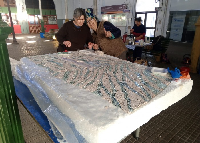 El grupo de mujeres de “Reciclarte” continúan trabajando en la confección de la pluma en mosaico para los festejos del Bicentenario de la Independencia.