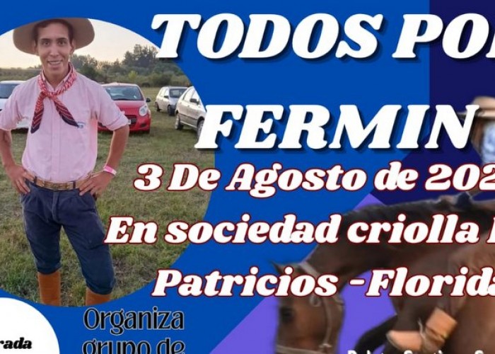 El domingo 3 de Agosto, en la Sociedad Criolla “Los Patricios del 25”, se realizará una jornada a beneficio del joven Fermín Martínez, quien en las últimas horas fue trasplantado del corazón en Montevideo.