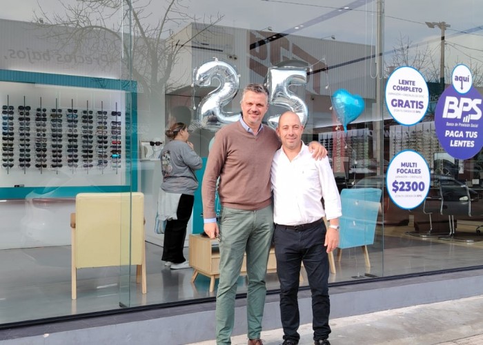 Ricardo Miranda y Marcelo Aguiar, principales de Tu Óptica, celebran 25 años de vida comercial vinculados a la salud visual.
