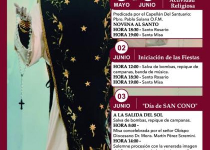 Se dieron a conocer detalles de las actividades religiosas en el marco del 140° aniversario del arribo de San Cono a la ciudad de Florida.
