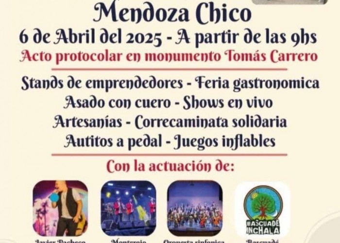 Este domingo se realizará en Mendoza Chico una nueva edición de su fiesta anual, la cual contará con stands de emprendedores y artesanos, feria gastronómica, venta de asado con cuero, shows en vivo, correcaminata solidaria entre otras actividades.